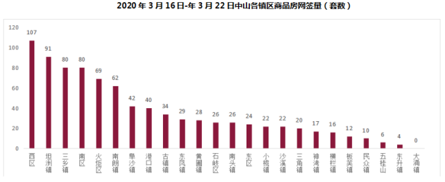 上星期,中山(3月16日-3月22日)商品房共网签867套,与上上星期商品房网签量相等。其间西区商品房网签107套,排名第一;坦洲镇商品房网签91套,排名第二;三城镇紧随其后,商品房网签80套。